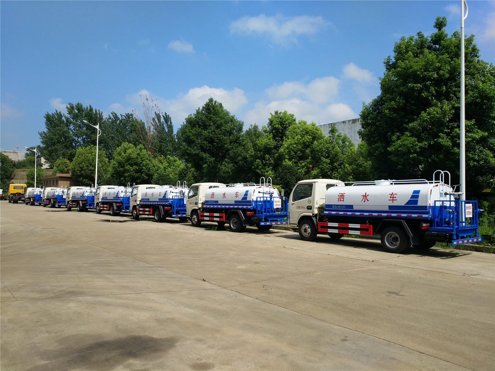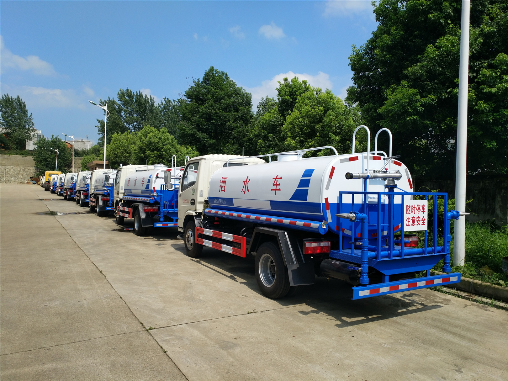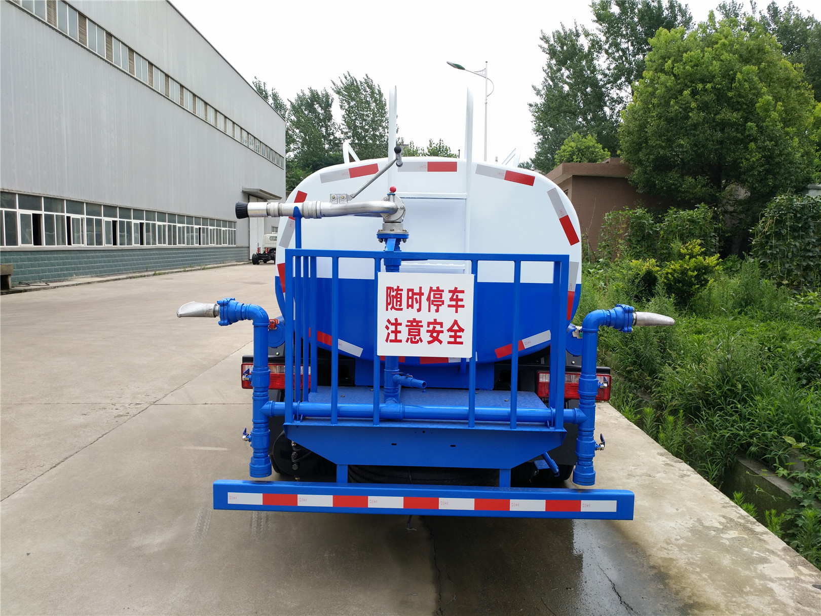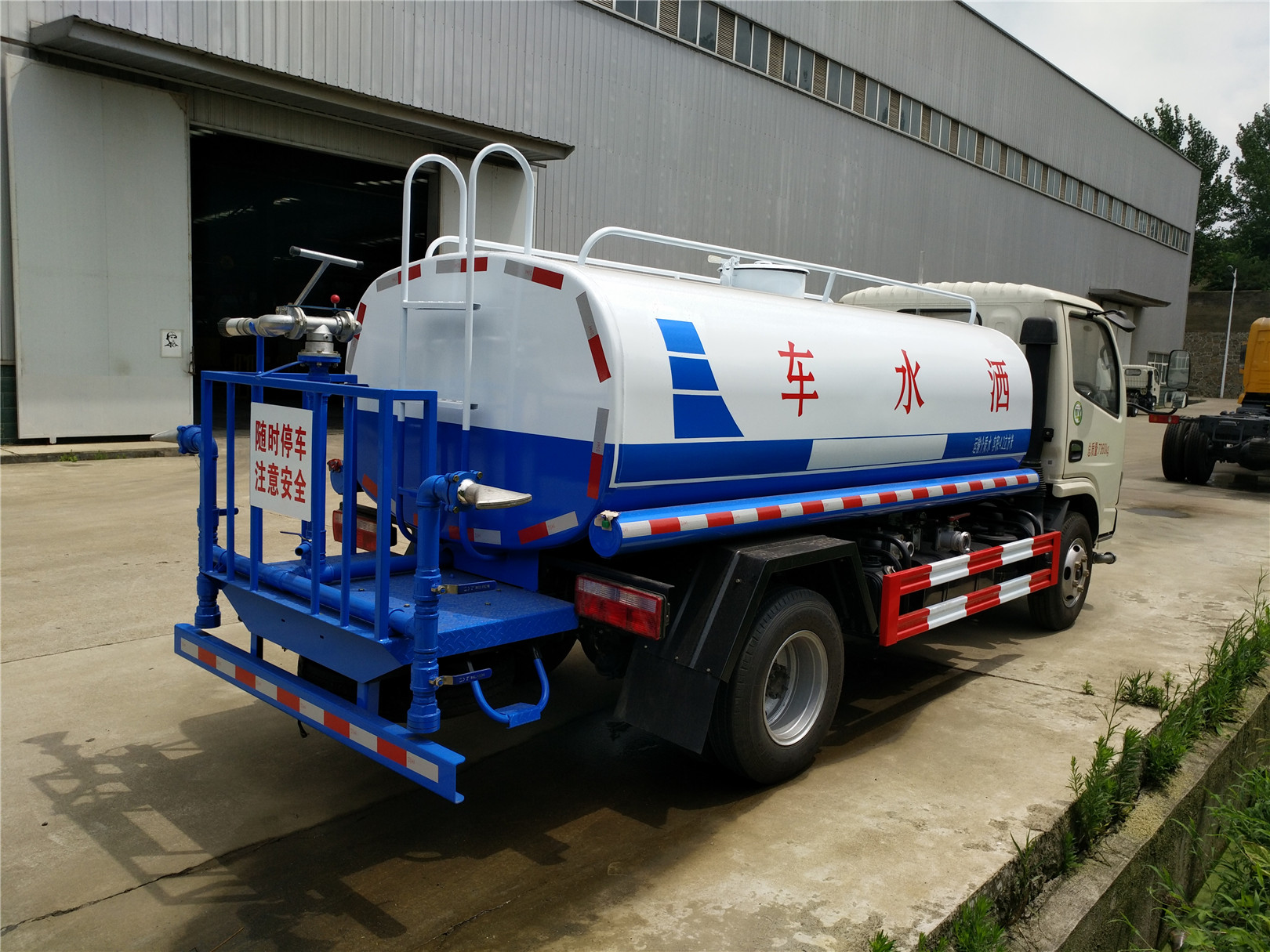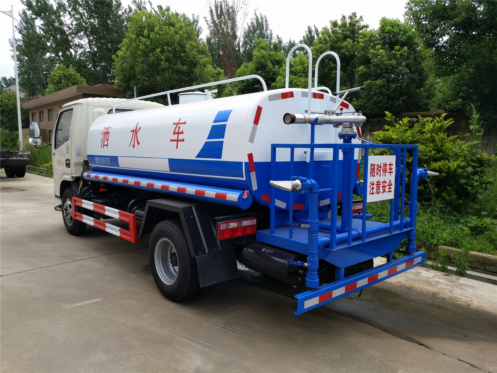 灑水車又稱為:多功能灑水車、綠化噴灑車。主要用于城市道路、廠區(qū)路面、園林綠化澆水、農(nóng)藥噴灑等,以達(dá)到美化環(huán)境的作用。灑水車由以下幾部分組成:專用車底盤、罐體、管道系統(tǒng)、操作系統(tǒng)。