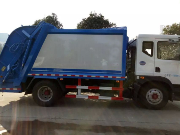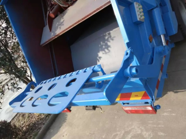 ⑨ 方便的操作控制 作業(yè)控制盒分別安裝在駕駛室內(nèi)和車尾,駕駛室內(nèi)的作業(yè)控制盒可控制推擠卸料和選擇操作模式(如自動(dòng)或手動(dòng)),車尾的作業(yè)控制盒則控制壓填機(jī)構(gòu)和翻桶機(jī)構(gòu)的作業(yè),使用操作十分方便。特別是在垃圾填埋場(chǎng),作業(yè)人員無(wú)須下車即可完成卸料和污水排放。
